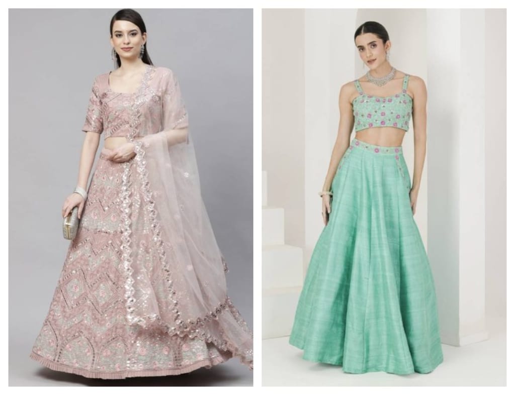 The trend of crop tops with lehenga skirts is still a leading choice in party wear in 2026. Designers are incorporating new silhouette cuts, necklines, and embellishments for the back of crop tops. High necks, halter necks, and off-shoulder styles are in fashion with long line flowy or heavily embroidered lehenga skirts. This is an excellent option for women who want to have a fun, chic, and stylish party look while preserving the essence of a traditional lehenga.