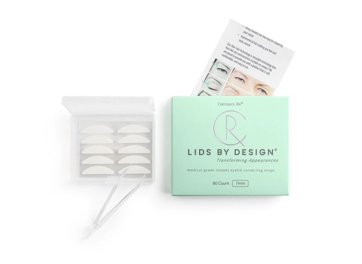 LIDS BY DESIGN: These instant correcting eyelid tapes can give you the desired brow lift in seconds without any side effects. It works all day long and is also safe to wear while sleeping. Each box has 80 correcting strips, and you can choose from 6 different sizes to get your ideal lift.