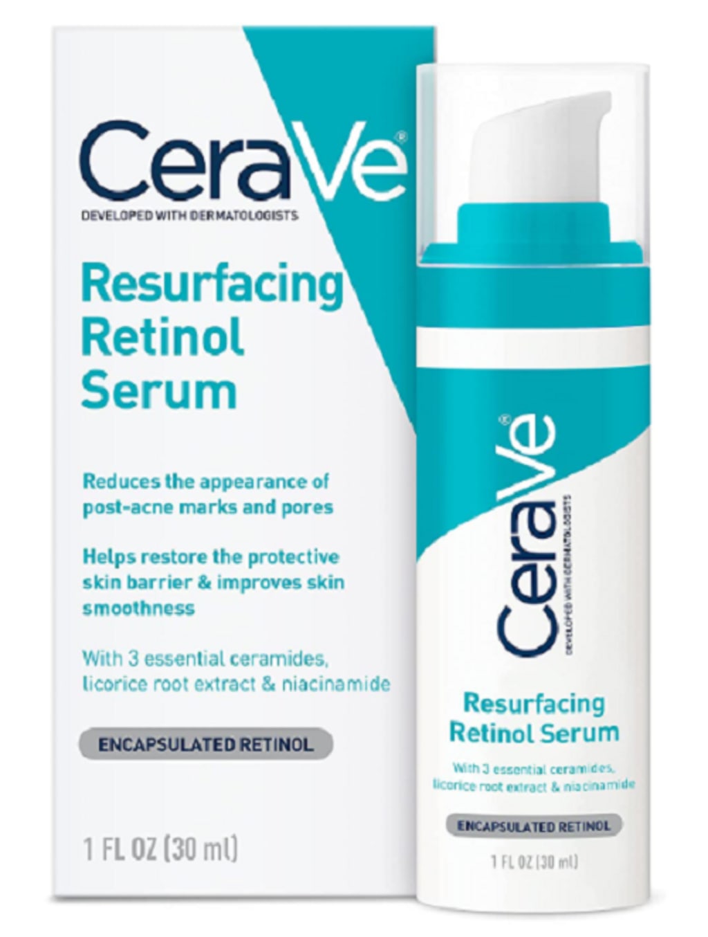 CeraVe Resurfacing RETINOL Serum is a highly regarded skincare product developed in collaboration with dermatologists. Its primary goal is to reduce the appearance of scars, marks, and pores while improving the overall smoothness of the skin. This lightweight serum combines the benefits of moisturization with targeted treatment, resulting in a refined and healthy-looking complexion.