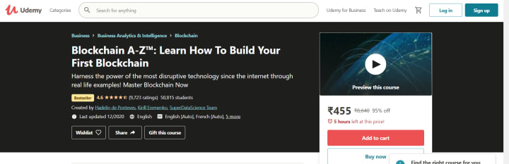 4. Blockchain A-Z: Learn How To Build Your First Blockchain – Udemy