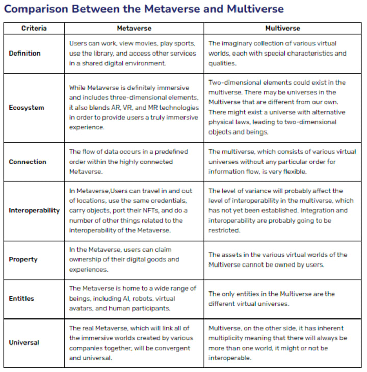 Difference between Metaverse vs Multiverse