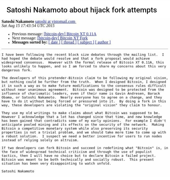 It was only four years later that Nakamoto would return to the scene, posting ‘I am not Dorian Nakamoto’ on the r/Bitcoin forum. Interestingly enough, after being absent on forums for the same length of time, Duke started posting again. He argued that we should ‘protect Satoshi’s identity for the good of the community’ and that he had ‘a few $M play money to tide himself over’. This was in response to people figuring out just how much Nakamoto’s stash was worth. By 2015, Andresen’s stewardship had kept the government off our backs, but scalability was still an issue. An influx of people were starting to use Bitcoin, and the system couldn’t handle it. Blocks were too small, and could only handle seven transactions a second. If we carried on like this, transactions would slow down considerably. It was inefficient. Thus, we had two choices. Either follow Andresen’s new proposal, which was practically a new currency (Bitcoin XT) or side with Blockstream. We tried to make an informed decision as miners in the two Bitcoin forums, but censorship was rife. It still is. Both Forums are owned by Theymos, a man that has dealings with… guess who? Blockstream. This hindered our ability to have a discussion about the future of Bitcoin, which is exactly what Blockstream wanted, because without a super-majority, nothing can be done. In fact, Nakamoto confessed himself 'disappointed' with the proposal and viewed Bitcoin XT as just another way for a few developers to force their views on others. How ironic...