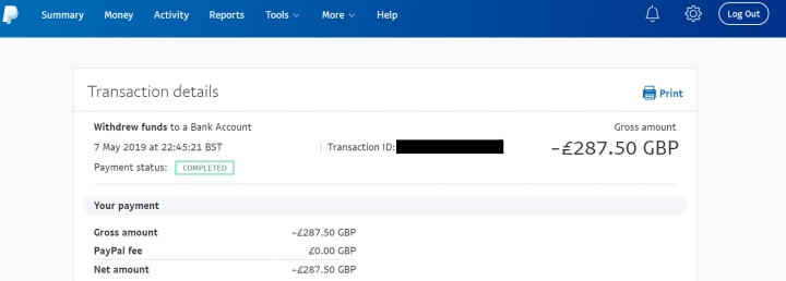 From there I moved the Bitcoin over to my Coinbase account, and from there to PayPal, and then onto my Bank in the United Kingdom.