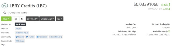 As you can see from the picture above, LBC is actually worth quite a decent amount, and at the time of writing, it's still going up, rising on the price of a Bitcoin Bull market.