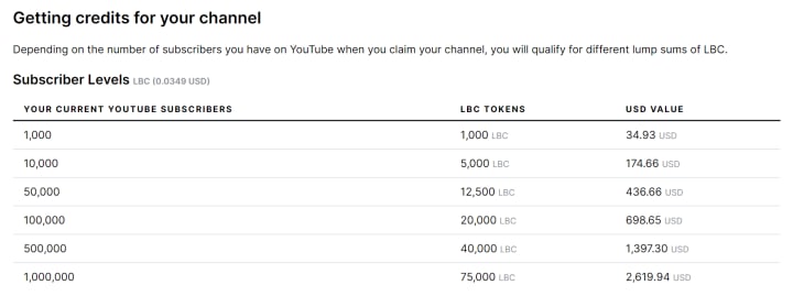 Considering LBRY are offering up to 75,000 LBC for the most popular channels, that's close to $2539 (£1,958) for channels with one million subscribers, simply for syncing your channel.