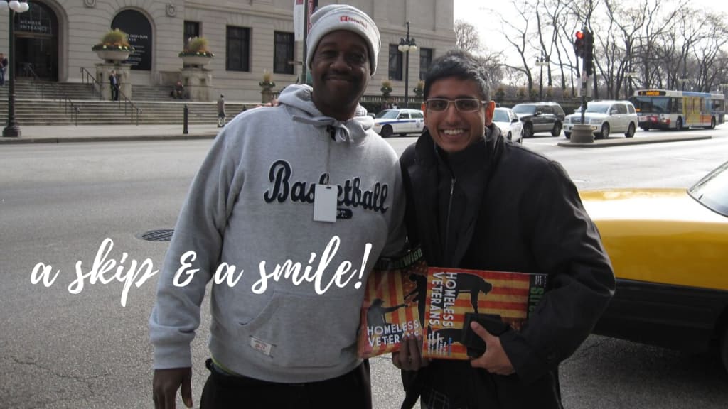 It took one homeless man to deliver justice to the thousands of people with homes in Chicago with the importance of a skip and a smile. Naïve, nonsensical, childish, superficial, superfluous, ridiculous and insane are probably some of the words that have crossed your mind. Well, no one ever said social justice was going to be easy, it would require a skip and a smile!