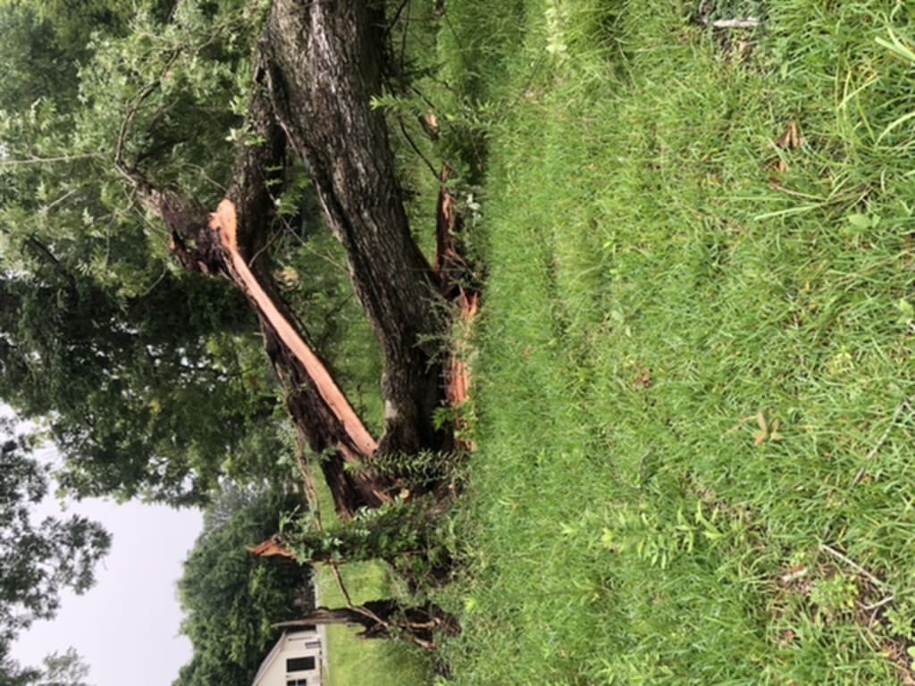 There was the loudest boom and the vibration of the entire floor , when the tree across from my house fell. The storm that caused this was minor compared to others and still the damage was laying in a pile the next morning. After inspection I see that the entire middle is rotten and that explained the easiness of which it came down. The age of the tree not known to me but I’m guessing that it’s about 50 years old and in this area seen more than its worth of crime. The fallen ones of this community are adding up daily. Murder and mischief is well known to this little neighborhood and I have only lived here for less than a year.