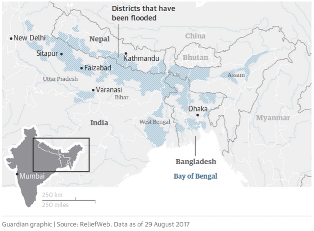The monsoon season is a period of time where there is a lot of rainfall precipitation, and usually, there is considerable destruction, but this year, the monsoon season was extremely enhanced by Climate Change, causing more than 1,200 deaths in India, Bangladesh and Nepal. 40 million people were affected by the monsoon season, either injured, forced to leave their homes and have nowhere to go, or lost everything they had.