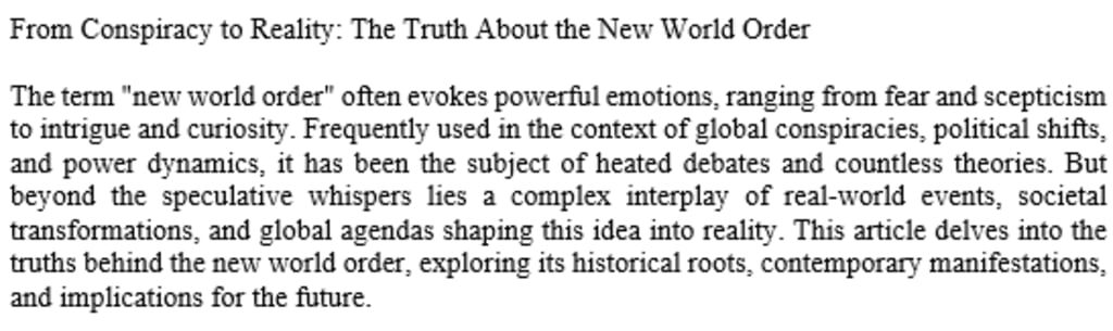 Understanding the realities of the new world order requires separating fact from fiction. It involves recognising the legitimate concerns raised by its critics while appreciating the opportunities it presents for progress.