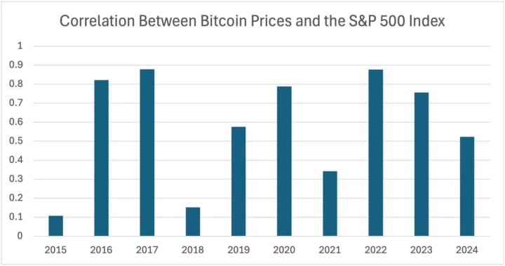 The checkered relationship between inflation and Bitcoin prices suggests that this asset class is not a reliable inflation hedge. However, its consistent positive correlation with equity prices has withstood the test of time. Even with the one-time factors that have impacted Bitcoin prices, the overwhelming evidence supports the view that this asset class is more closely aligned with stock prices than with inflation or inflation expectations.