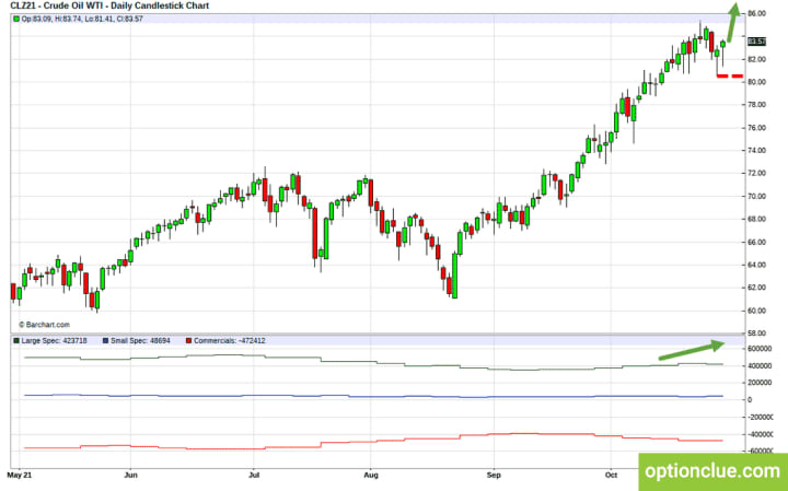 COT net position indicator decreased but didn’t reverse. Large speculators are buying oil. Professionals’ opinion corresponds to the Daily trend direction.