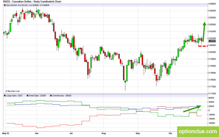 COT indicator increases. CFTC reports indicate that large speculators are buying the Canadian dollar and hedgers are selling and the professionals’ opinion corresponds to the market technical picture.
