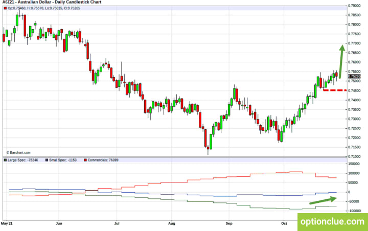 COT indicator reversed. CFTC reports indicate that large speculators are buying and the professionals’ opinion corresponds to the market technical picture.