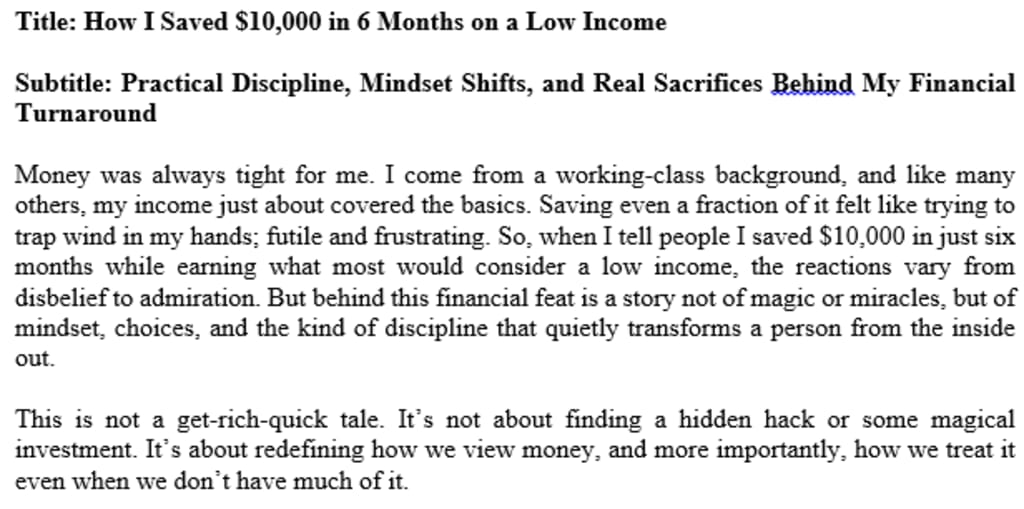 Title: How I Saved $10,000 in 6 Months on a Low Income