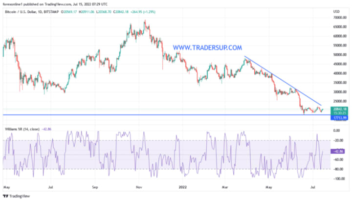 For the third day in a row, the price of the BTC/USD currency pair against the US dollar is trying to bounce higher, but its gains did not exceed the level of $20,911.recovery came after the sale of the most popular currency pair in the cryptocurrency market towards the support level of $18,900. The currency pair is stable around the level of $20,800 at the time of writing the analysis, waiting for any new. In general, the US dollar remains stronger with expectations of more US interest rate hikes and higher rates than previously expected, along with the demand for it as a safe haven.