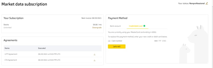 Next, purchase the Market data subscription for $9