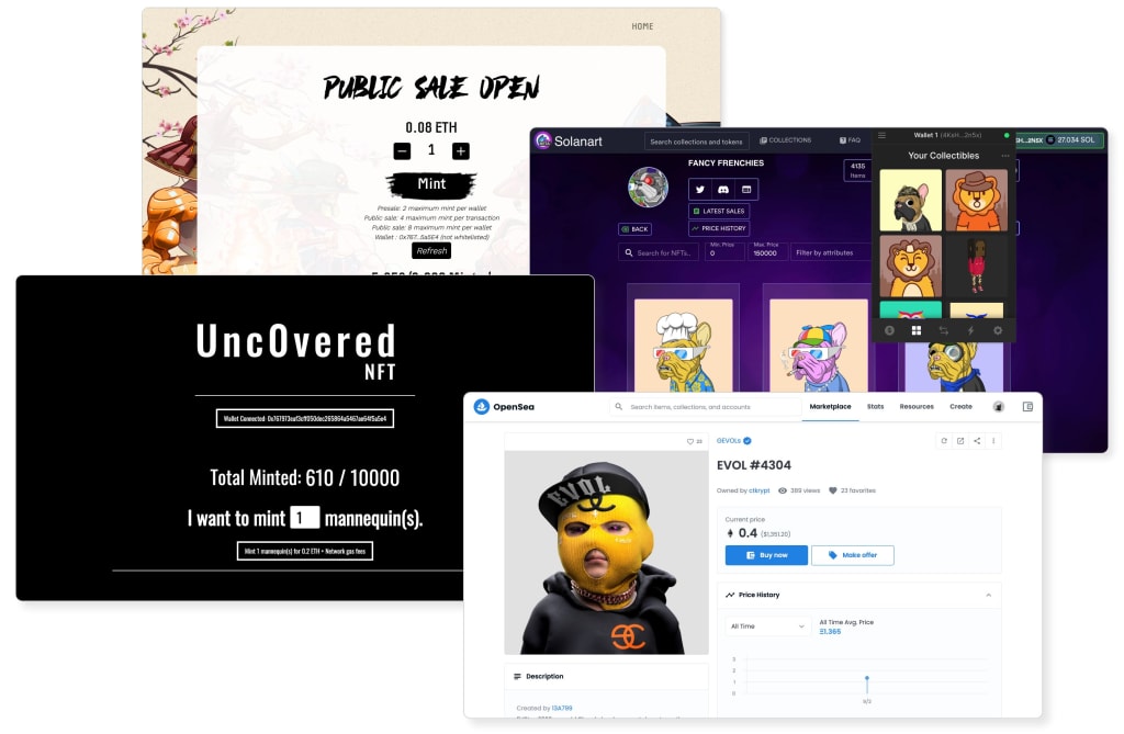 Sales between creator and collector, aka the primary NFT market, is usually conducted directly on the creator's own website. Afterward, collectors can trade amongst each other on secondary marketplaces like OpenSea and Solanart.