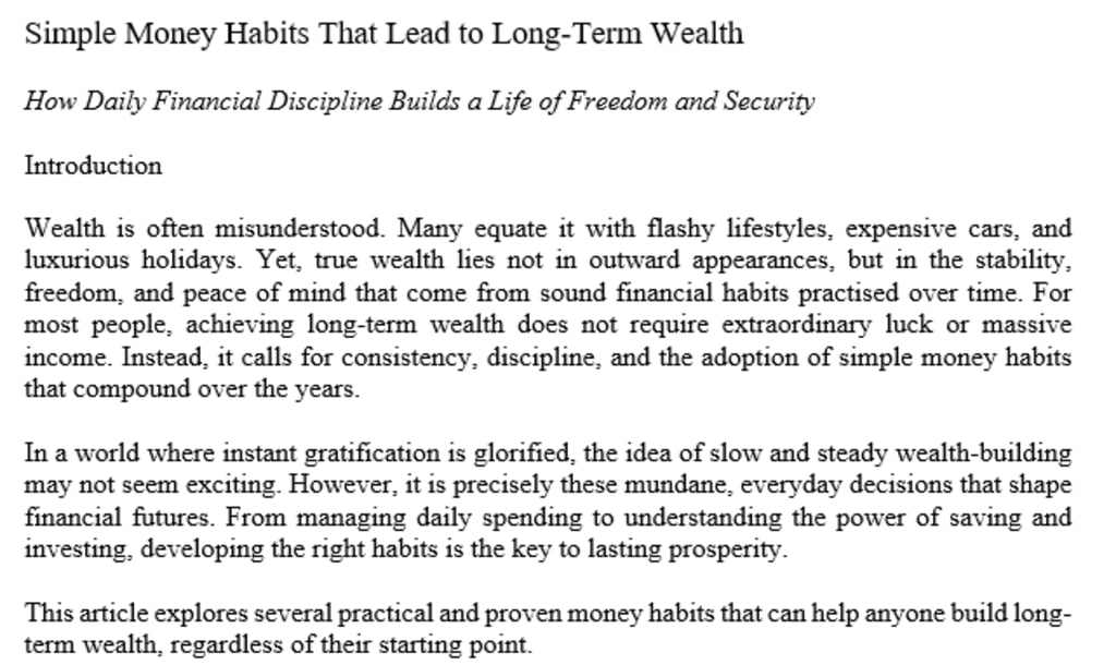 This article explores several practical and proven money habits that can help anyone build long-term wealth, regardless of their starting point.