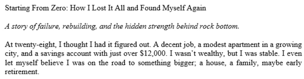 Starting From Zero: How I Lost It All and Found Myself Again