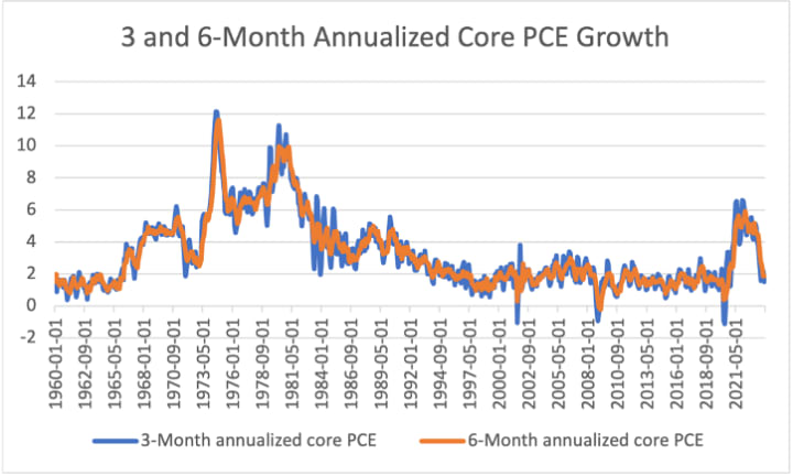 Others might say, “Wait a minute! The Fed’s goal is to bring the core PCE inflation rate to a yearly growth pace of +2.0%, and at +2.9%, inflation is still running hot.” Yes, that is true, but when you look at the 6-month and 3-month annualized growth rates, core PCE is rising at a yearly pace of +1.9% and +1.5%. That means the Fed has already accomplished its +2.0% goal on a 3 and 6-month annualized basis!