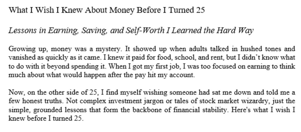 Now, on the other side of 25, I find myself wishing someone had sat me down and told me a few honest truths. Not complex investment jargon or tales of stock market wizardry, just the simple, grounded lessons that form the backbone of financial stability. Here's what I wish I knew before I turned 25.