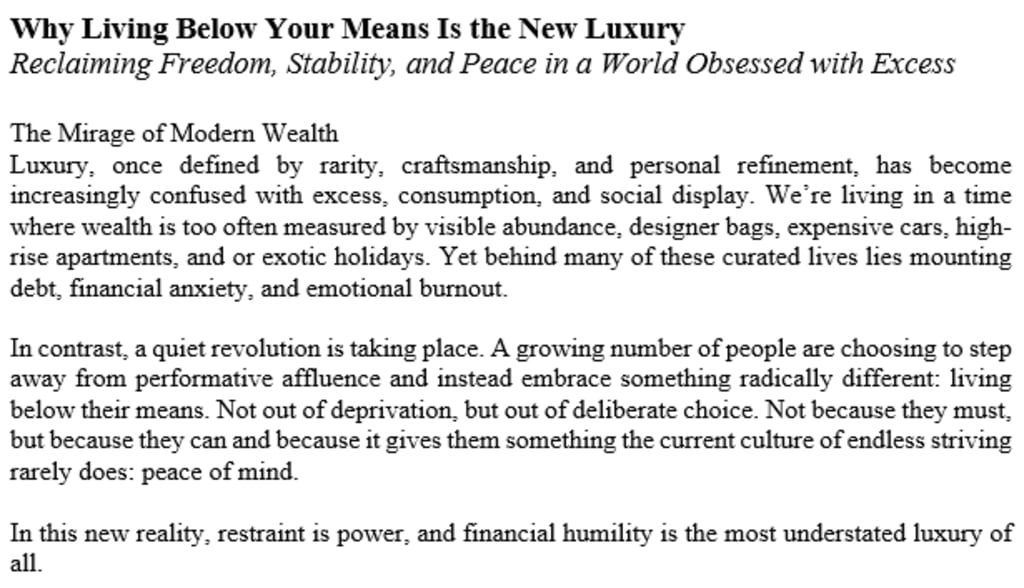 Why Living Below Your Means Is the New Luxury