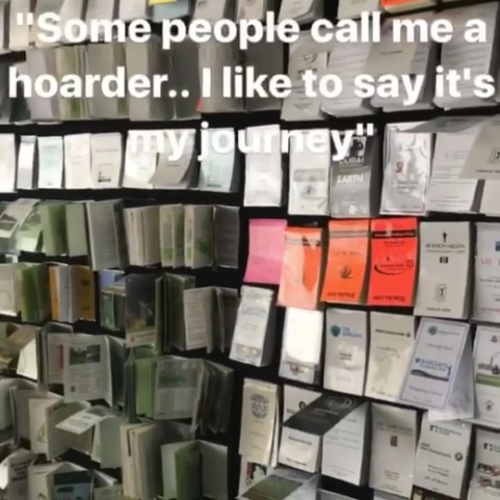 He used the books to transform a wall in his home into wonderful piece of golf art from past tournaments throughout his career.