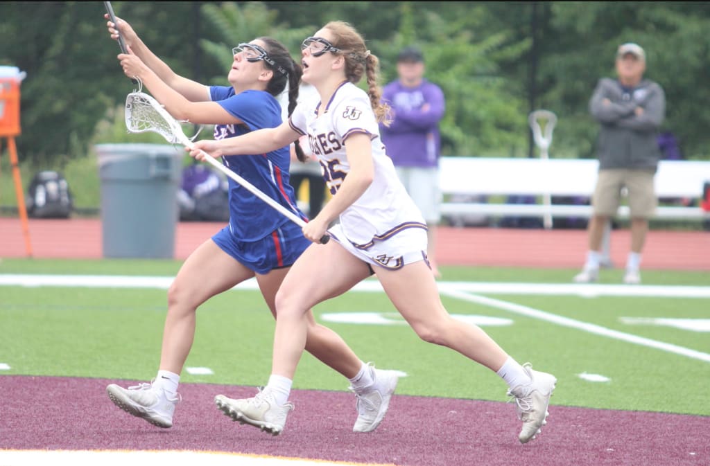 Then John Jay essentially banged the gong when their senior triumvirate struck. Brennan drew the defense by making a move toward the goal line, and the dish to Nolan once again had Puccio a lady in waiting. Raising her mallet, the middie took off, received the pass and easily swung away for a 5-0 game with 14:19 remaining in the half.