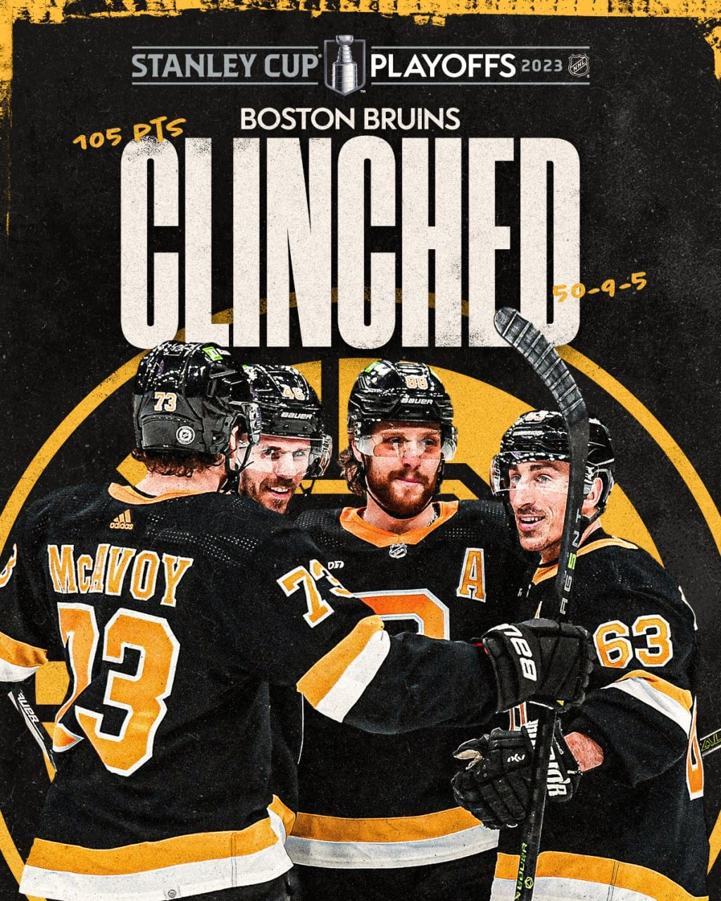 In their 64th game, the Boston Bruins became the first team to clinch a spot in the 2023 Stanley Cup Playoffs