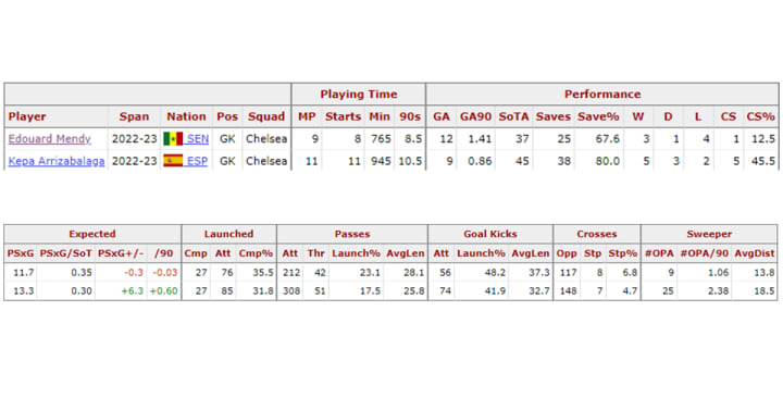 Edouard Mendy and Kepa Arrizabalaga — Premier League comparison for season 2022/2023 so far / Photo © fbref