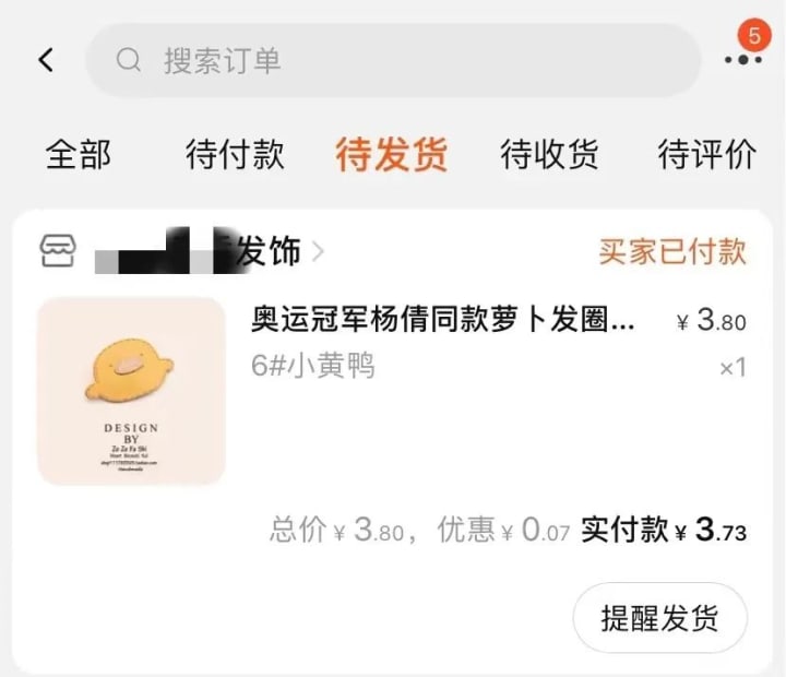 Mr. Lu said that the factory produced "little yellow duck hairpins" and "carrot rubber bands" before, but they did not sell well, with only 20 to 30 orders per day. But since Yang Qian won the Tokyo Olympics on July 24, these two hair accessories have become popular all at once, and orders have skyrocketed.