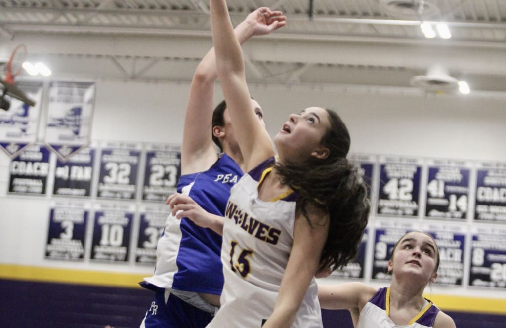 A 14 point lead opened, Pearl River had one more turnover to force in the quarter. Palumbo cornered Avery Bisignano on the sideline and her deflection went off the Wolf. Then on the inbound, Lynch’s penetration drew a crowd and opened Cahill up for a layup.