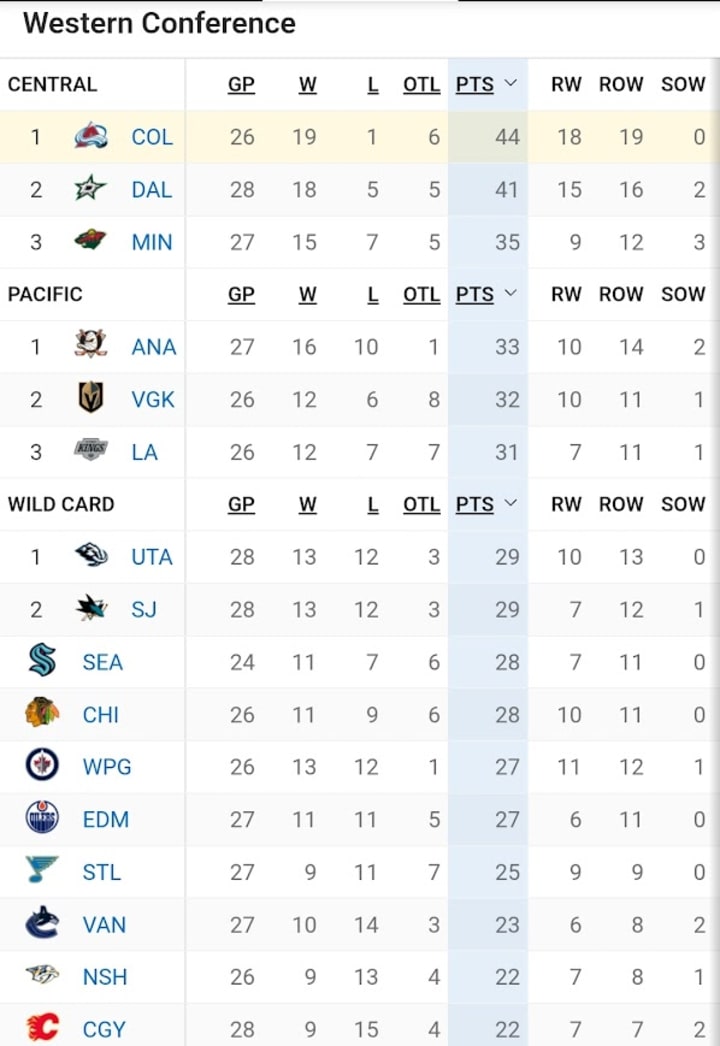 There they are, folks. The San Jose Sharks... above the playoff line. As of this writing, they are in the 2nd Wild Card position. I know it's only December--late in football, but early in basketball and hockey, but even so, the Sharks are in a playoff position almost two months into the season!