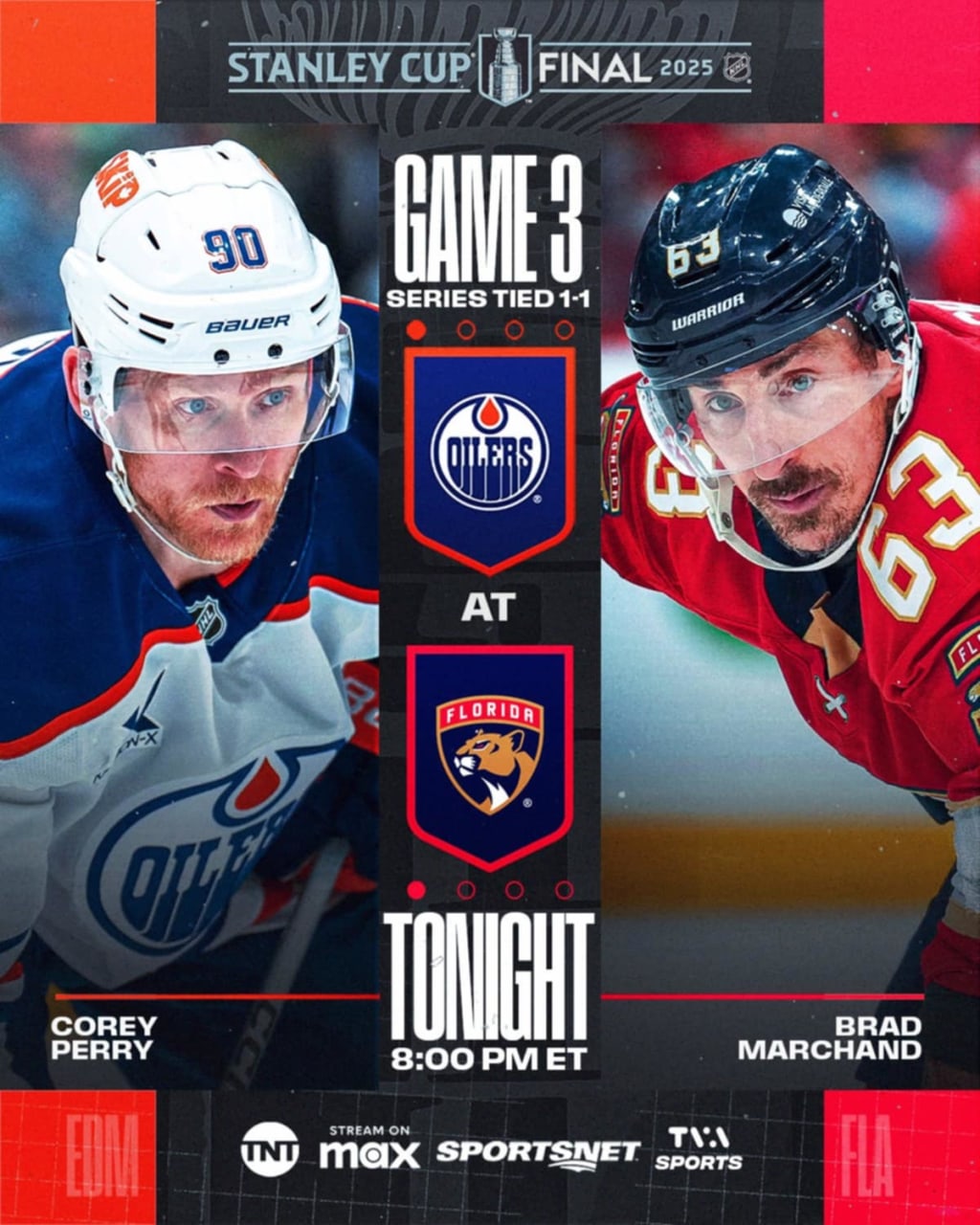 So far, the 2025 Stanley Cup Final, the rematch between the Edmonton Oilers and the Florida Panthers, has been quite legendary. Only two games played, but nine periods were featured. Game One needed overtime and Game Two needed double overtime, and after all the dust settled, it's a 1-1 Final--the first 1-1 Final in five years. The scene now shifts to Sunrise, Florida for the next two games, the very site where the Panthers won the Stanley Cup last June. With the series being 1-1, it is guaranteed that the Final will head back to Edmonton, but the series score will be determined in these next two games.