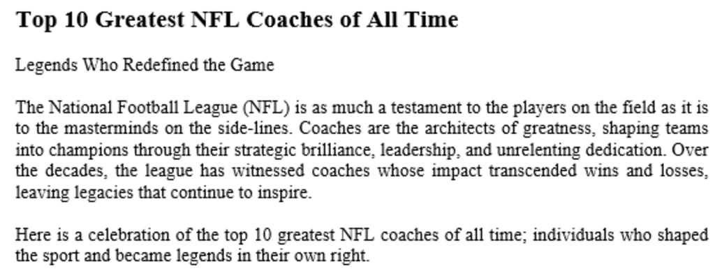 The National Football League (NFL) is as much a testament to the players on the field as it is to the masterminds on the side-lines. Coaches are the architects of greatness, shaping teams into champions through their strategic brilliance, leadership, and unrelenting dedication. Over the decades, the league has witnessed coaches whose impact transcended wins and losses, leaving legacies that continue to inspire.
