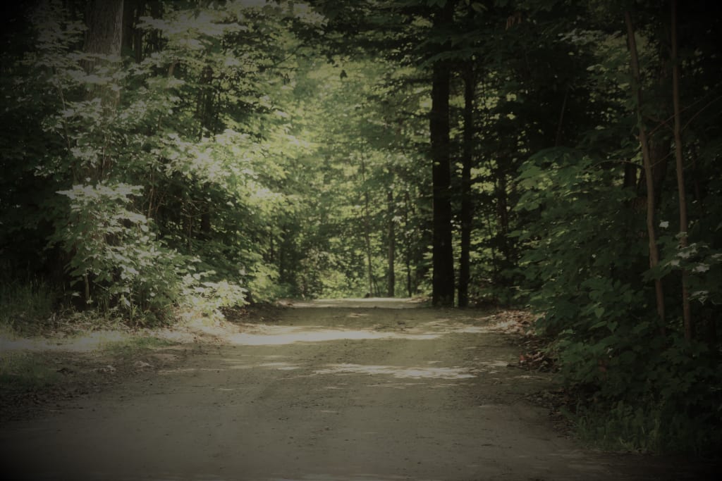 Naomi marched up the steep gravel driveway in a fit of rage and exhaustion. She needed to clear her head, the voices had become overwhelming. All she had wanted was a little getaway in the Haliburton highlands, and yet the chaos that seemed to consume her life was inescapable. She paused at the top of the driveway, looking left then right, as she tried to steady her breathing. Both directions had luscious trees overhanging the road, which was really more like two ruts with grass growing in between. She chose left for no particular reason and forged on.