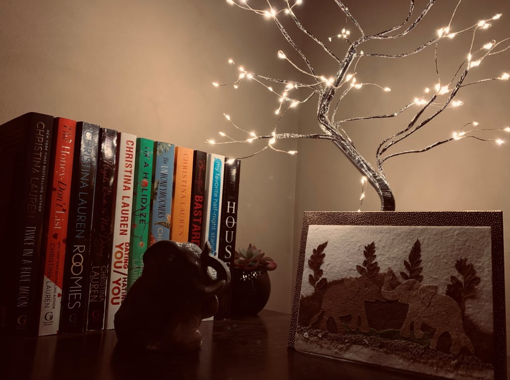 It’s just over a foot tall and has a little LED light at the end of each branch and serves as a unique and ethereal bedside light. I love nothing more than curling up in bed next to it to indulge in the latest Christina Lauren novel, escaping pandemic life for just a little while.