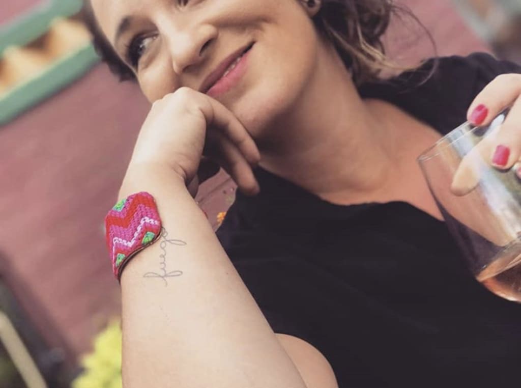 In my tiniest tattoo lies the one with the most powerful meaning for me. It’s also the body art that is most ridiculed or questioned. It isn't the most expertly done one either. Fuego (Fire in Spanish) tattooed in my cursive handwriting. I never thought I’d get a word tattooed on my body. As a writer, for some reason I never wanted to mark my skin with words. I wanted to decorate it with art.