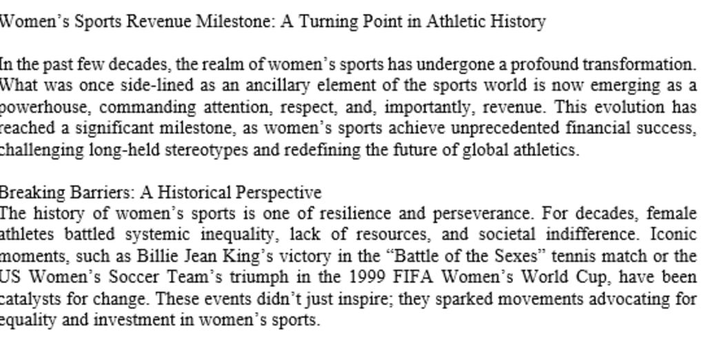 Women’s Sports Revenue Milestone: A Turning Point in Athletic History