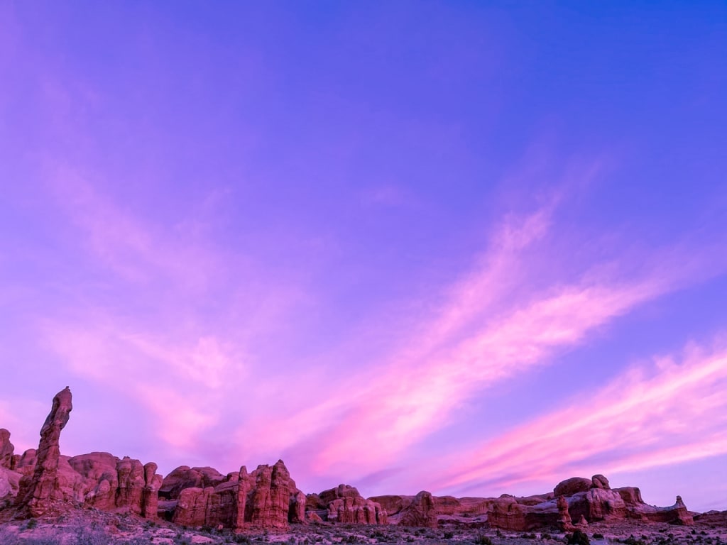 She felt a sun-warmed rock beneath her hands and watched as the sky threw cotton candy colors against a sharp and ancient landscape. The temperature dropped as soon as the sun did, and after fighting shivers she made her way back to the van- thankful for the moon beams lighting the path. The rusty door slid open with a groan and Jessica climbed in and immediately filled her kettle to begin her bedtime tea ritual. As the warm cup thawed her fingers she began to count her blessings out loud to the sleepy trees surrounding her camp.
