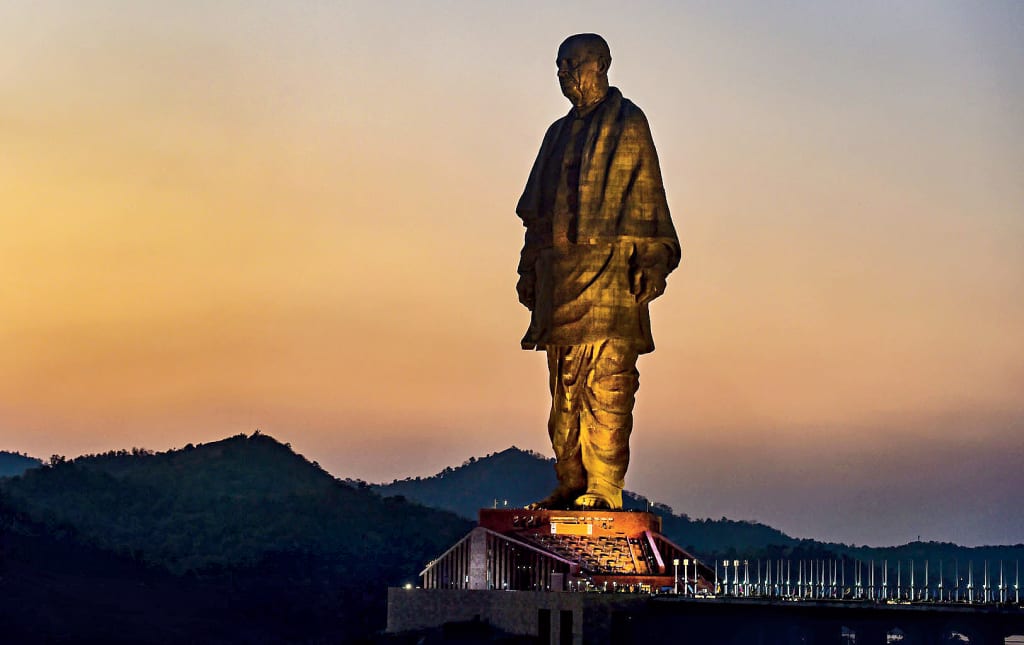 The Statue of Unity is located in Gujarat, India and depicts Vallabhbhai Patel (1875 to 1950).