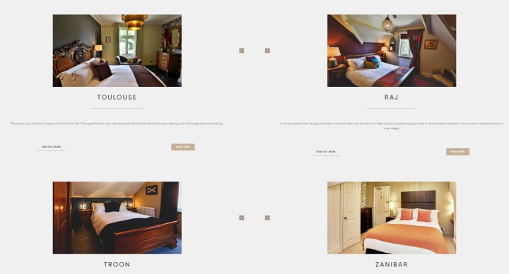 There are four themed rooms and we tend to stay in Troon which is Caledonian based, but there are three other rooms all themed and luxurious, they are Toulouse, Raj and Zanzibar and you can visit them with Mat and Craig’s descriptions here.