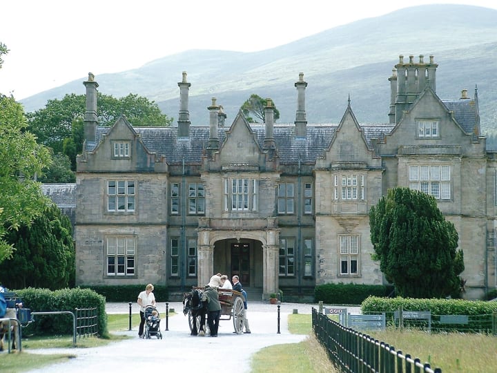 This Victorian mansion is the focal point of the park. You can follow in the steps of Queen Victoria who visited the house in 1861. Since then, it has been turned into a museum demonstrating County Kerry folk life. Wander through enjoying the restored, fully furnished rooms of period style. You can feel the elegance of what it was like for the 19th century landowning class. Afterwards, take a leisurely stroll through the nearby gardens or stop by one of the craft workshops and see traditional demonstrations of weaving or pottery. Also nearby are the ruins of Muckross Abbey, a Franciscan friary built in 1448.