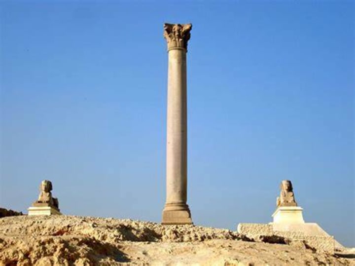 Southwest of the city you’ll find Carmous where there is a hill with the remains of ancient walls, architectural fragments and rubble. Rising from the ruins of the famous Serapeion or Temple of Serapis, once used to store the overflow of manuscripts from the Great Library of Alexandria is Pompey’s Pillar. This is a column of red Aswan granite with a Corinthian capital and rises up almost 27 meters in height.