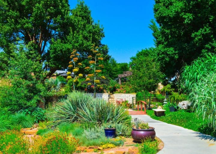 Amarillo Botanical Gardens have an amazing silver and glass diamond shaped conservatory with tropical plants. There are a variety of gardens among them a fragrance garden.