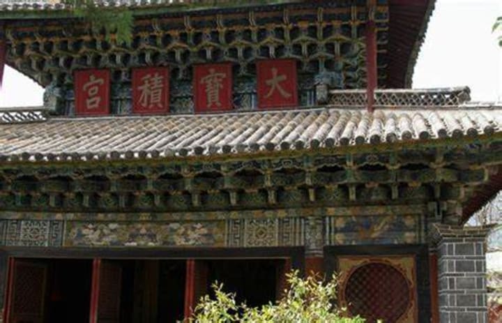 The Mufu Wood Mansion is a reconstruction of the original building to give an idea of what the palace of the Mu clan looked like. The Mu clan of the Naxi rules here as vassals of the Ming Empire and then vassals of the Manchus of the Qing Empire. Built halfway up a hill the building offers a great view of the surrounding city of Lijiang. The present wooden complex and gardens stretch for about eight acres. Visitors can walk about on walkways and climb up and down stairs to enjoy the scenery and see the interiors and courtyards. In the courtyard, you can take a drink of tea and people can purchase beverages and alcoholic drinks. The azalea and orchid gardens are lovely At the top of the complex is a Daoist temple and Daoist fortune tellers can be hired.