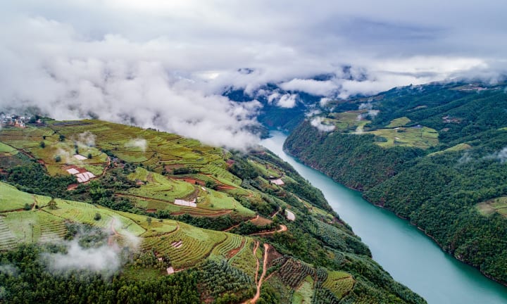 The Three Parallel Rivers Protected Area is the place where the headwaters of the Salween, the Mekong, and the Yangtze Rivers flow close together. These great rivers and their ecology are protected by a national park. UNESCO World Heritage calls it one of the world's most biologically diverse temperate regions on the planet. This is a popular area for ecotourism. The rivers flow down north to south through deep parallel canyons in the national park. In some places, the gorges are 2,000 meters deep and at their closest, the three canyons are 18 and 66 km apart.