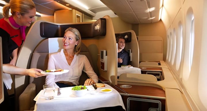 -Speaking of planes, fly on an Airbus, for the best business class experience. (If at all possible, save up so you can fly business class, because it is not only uncomfortable flying in coach, it’s downright dangerous.) Walk around the plane often, to prevent blood clots. An Airbus has stairs to climb up and down from the upper level for business class passengers, so you can get that circulation going.
