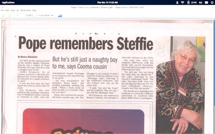 -Atheists or Jehovah’s Witnesses: Truth be told, the major “religion” in Australia seems to be sports; similar to how, in the USA, it seems to be politics. At first, I assumed older grownups in Australia were atheist because they believed in extreme evolution, but I was wrong. One of them explained to me that an entire generation turned atheist because of horrible child abuse from the Anglican and Catholic churches. (Institutional abuse was almost as bad as what was revealed in Ireland.) However, people still had a spiritual need… It shocked me to learn that even the Pope’s cousin had become one of Jehovah’s Witnesses! (Not the current Pope—the one who eventually resigned.) It surprised me that I encountered so many lovely YOUNG adults in the Melbourne area who had become Jehovah’s Witnesses.