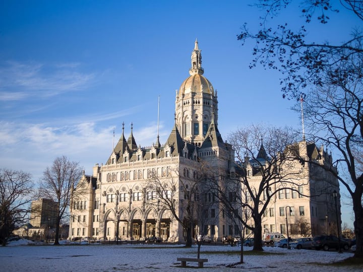 The High Victorian Gothic State Capitol sits on Capitol Hill overlooking Bushnell Memorial Park. It consists of the State Senate Chamber, the Hall of the State House of Representatives, and the offices of the Governor, Lieutenant Governor, and Secretary of the State. The building is a National Historic Landmark and has many lovely features like the inlaid white and red Connecticut and Italian marble floors and stained glass windows. Guided and self-guided tours are available.
